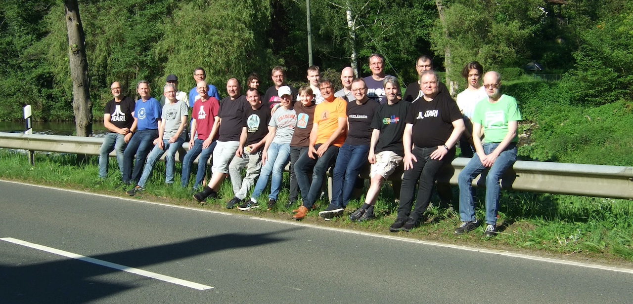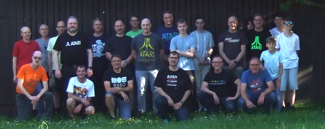 Left to right: Atari4fan, NO, luckybuck, Prodatron, Insane, wizard, beetle, Susanne, Andrea, DjayBee, Holgibo, Dr. Irata, Wolfgang, dhucke, Chris, Artax, dl7ukk, Zaxxon-HH, Uncle Harry, R.I.K., alx, Bunsen, FloppyDoc (white cap), Ektus, Cash and arik_s_YT, Deyta, ??, 8bitjunkie, kekz (aka ... ), A friend of Wolfgang.